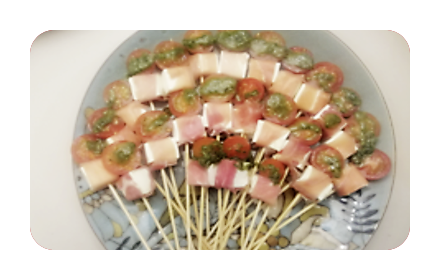 Brochetas de jamón serrano y capresse