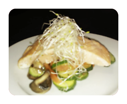 Salmón grillado en salsa de naranja a la pimienta y vegetales salteados a la mantequilla