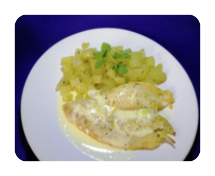 Suprema de pollo en salsa al limón con papas salteadas